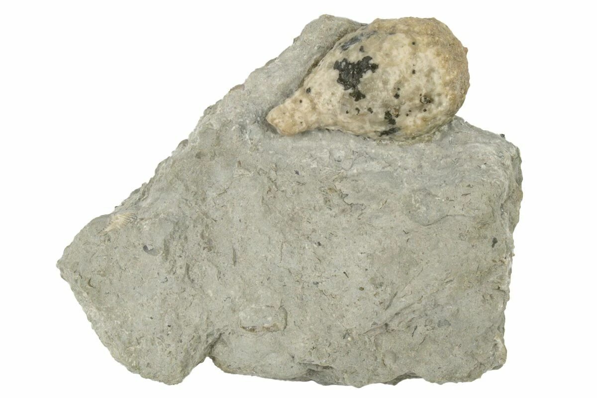 This is a 1.5″ long fossil cystoid (Holocystites scutellatus) from the Silurian period Osgood Shale of Napolean, Indiana. It has been exposed from the rock using air abrasives. It comes with an acrylic display stand.