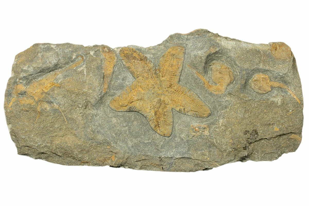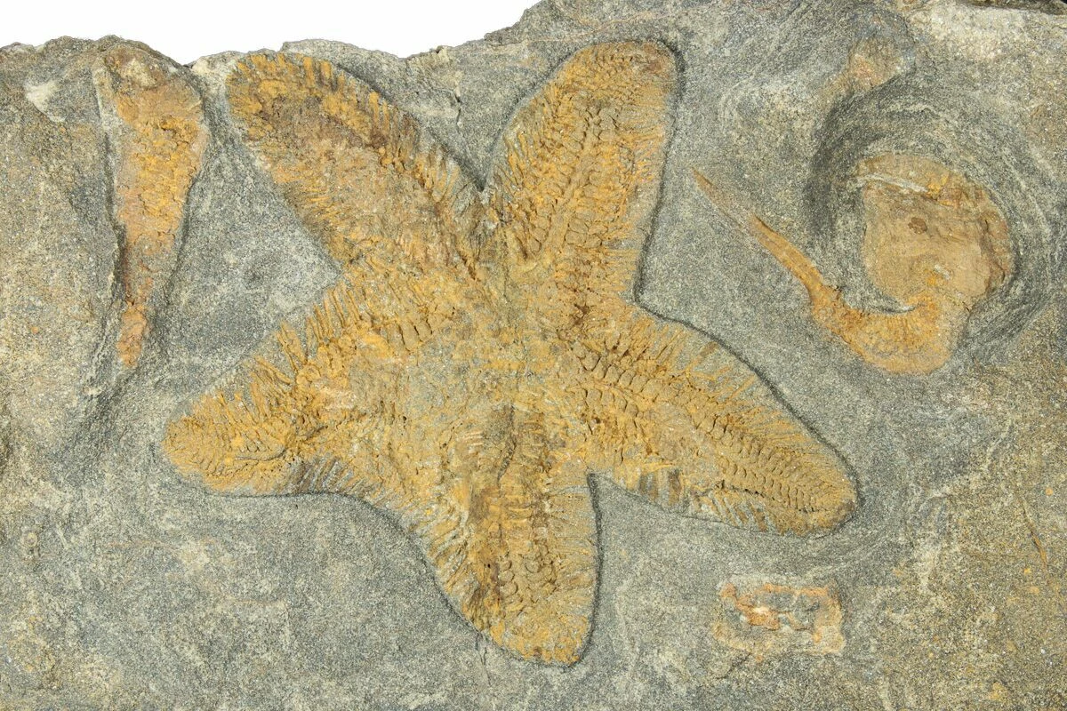 3.9″ Feathery Starfish Fossil With Carpoids – Kaid Rami, Morocco