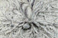 This is a 6.2″ wide holdfast (“root”) of a crinoid of the species Eucalyptocrinus crassus. It is Silurian in age (430 million years old) and was collected from the Waldron Shale of Indiana. The rock has been meticulously worked away to expose this specimen, along with a brachiopods and a small gastropod.