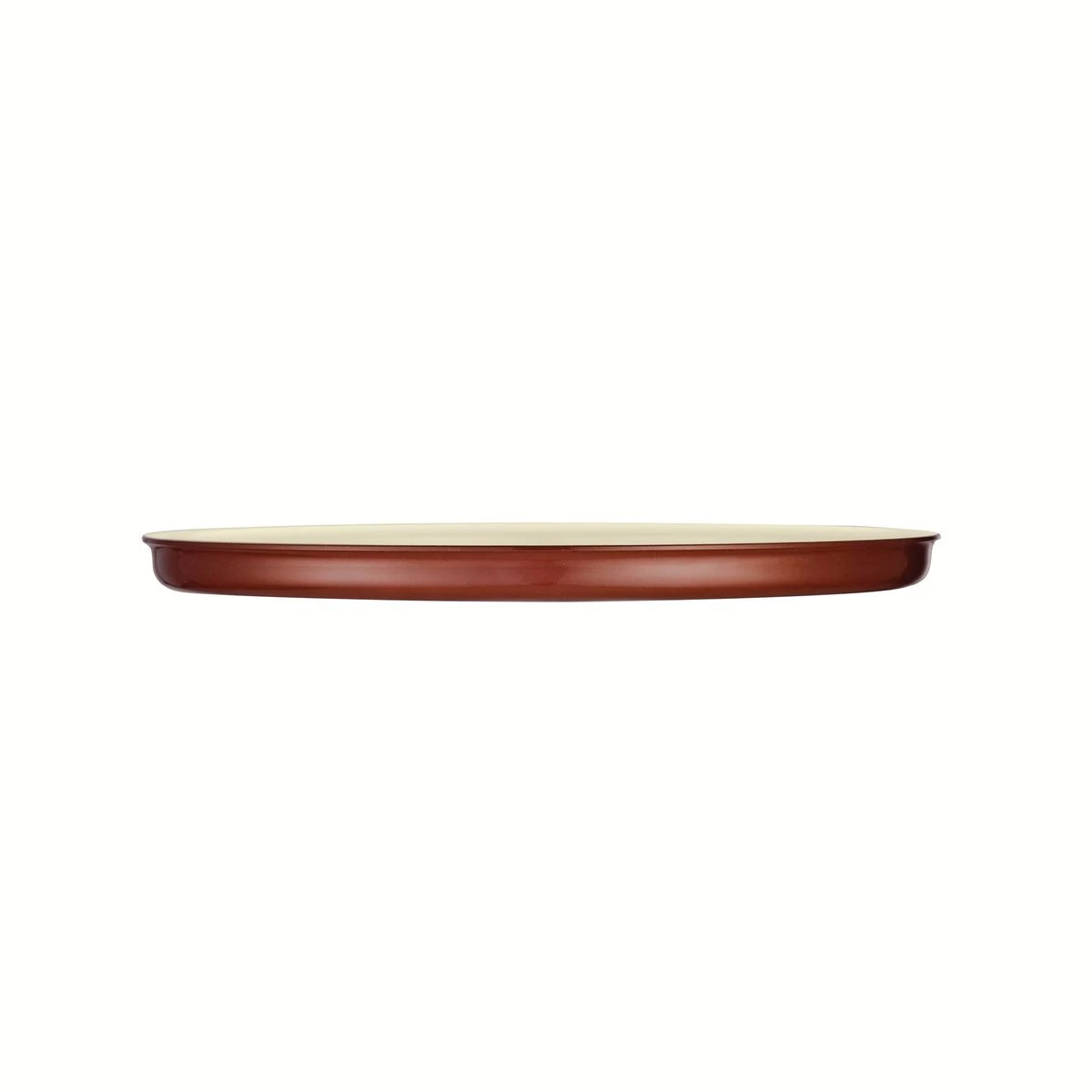 Family pizza night just got a lot more delicious! Gather your favorite ingredients and create a homemade artisan pizza with Tramontina”s 12.5 in Pizza Pan. This item features a durable, metallic copper porcelain-enamel exterior and a smooth ceramic interior for simple, healthy cooking, effortless cleaning and outstanding durability. The interior ceramic coating technology is free of PTFE, PFOA, lead and cadmium. The item is oven-safe up to 500°F / 260°C.