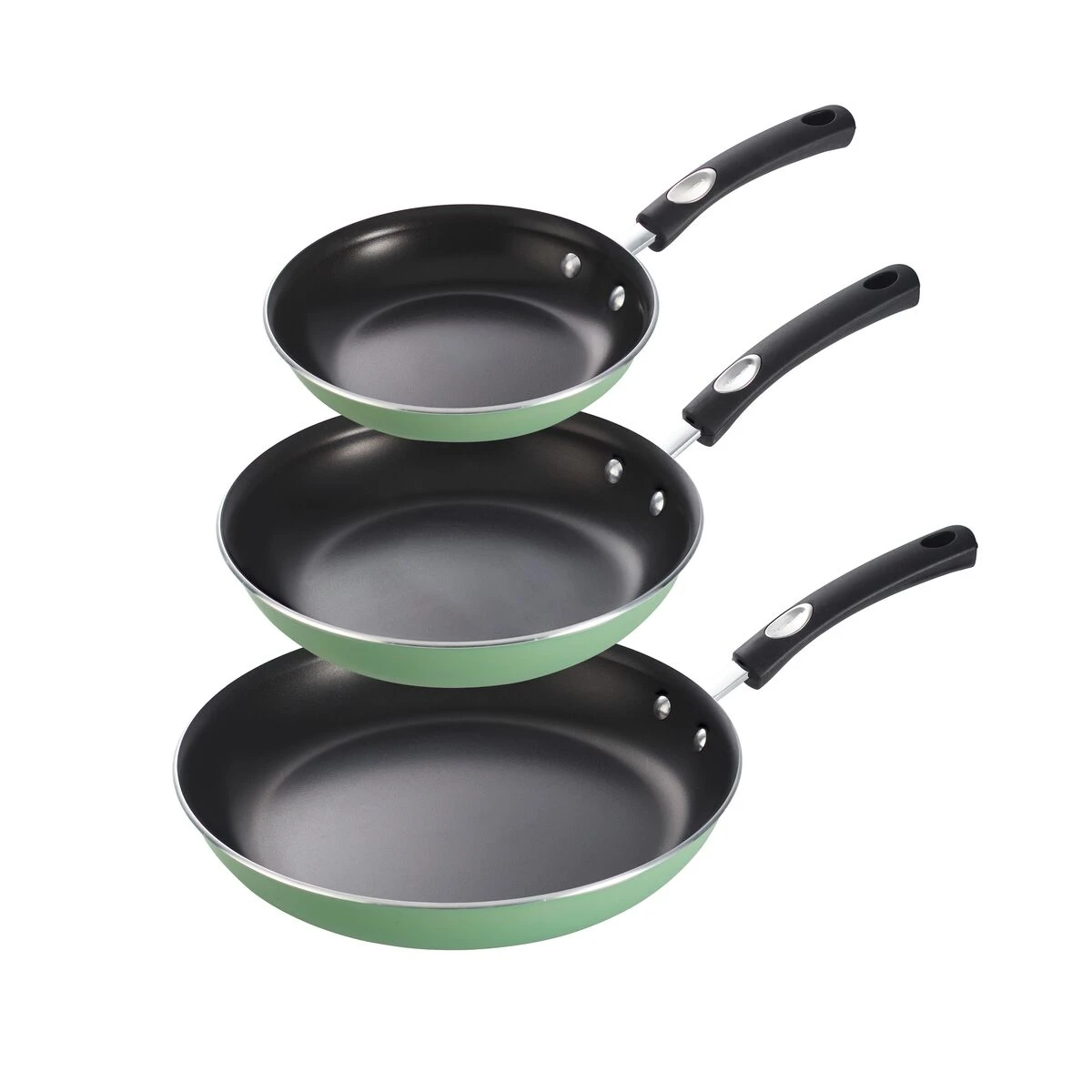 The Tramontina 3 Pk Fry Pans set solves the frustration of food sticking and requires little oil for cooking. Each lightweight fry pan has stamped shank construction with a soft silicone grip and a porcelain enamel exterior finish. The reinforced nonstick interior finish is perfect for frying eggs, making grilled cheese sandwiches and other hot foods that can easily slide from pan to plate without sticking. The nonstick, reinforced triple coated interior helps make cleaning the 8 in, 10 in, and 12 in fry pans easier than typical pans after use. Each fry pan in the Tramontina 3 Pk Fry Pans set has black handles with a soft silicone grip. Available in a variety of stylish colors.