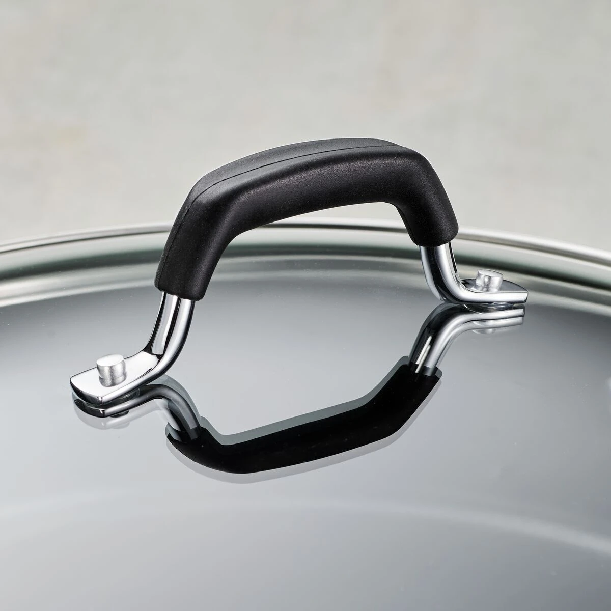 – Heat- and shatter-resistant tempered glass lid with stainless steel rim