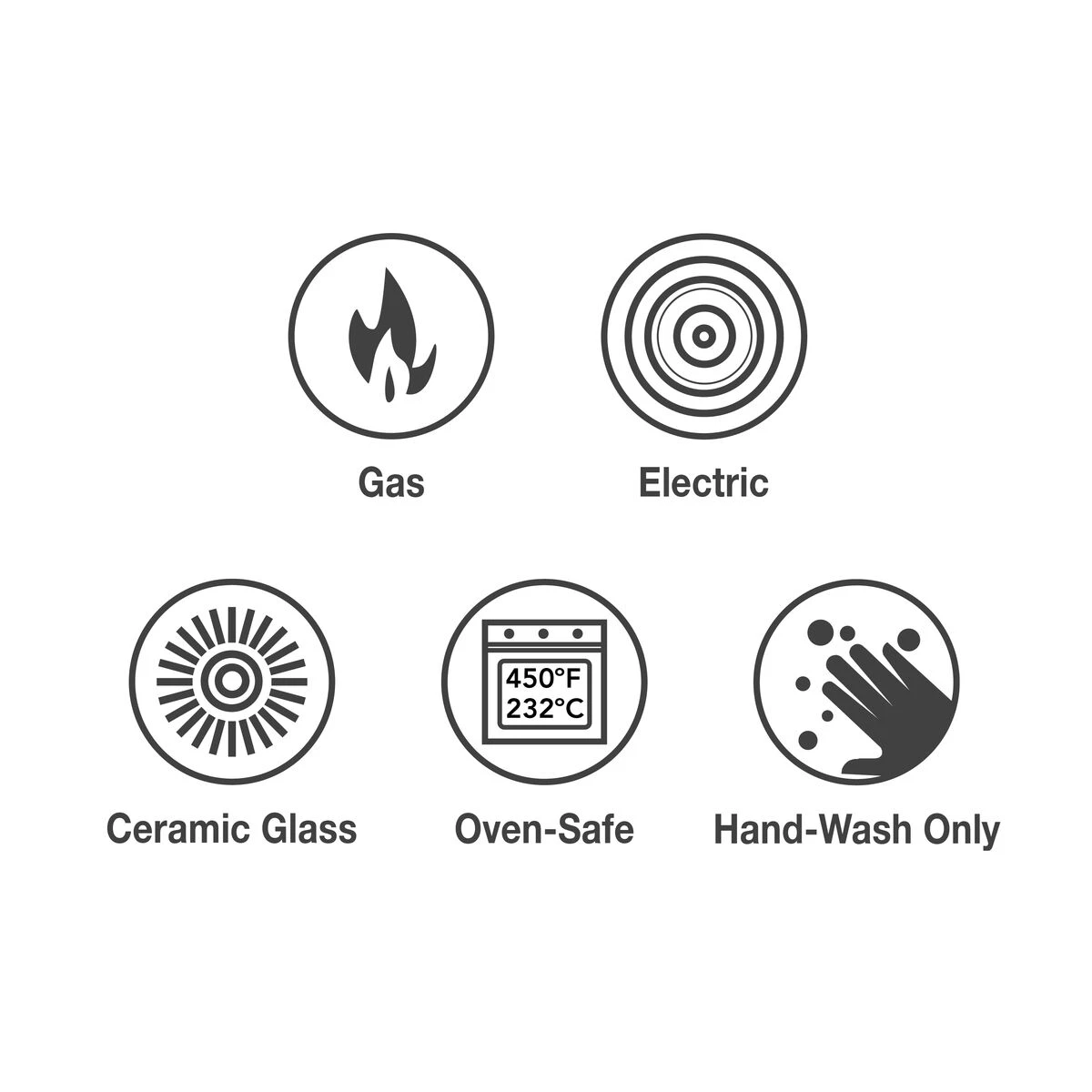 – Compatible with gas, electric, ceramic glass and induction cooktops