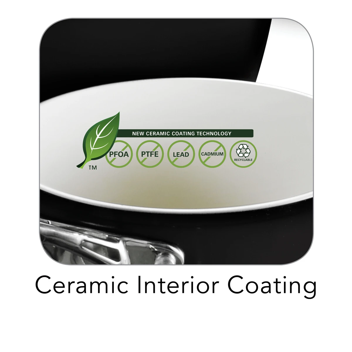 – PTFE, PFOA, lead- and cadmium-free ceramic interior provides a healthy, eco-friendly, quick release cooking surface that is easy to clean