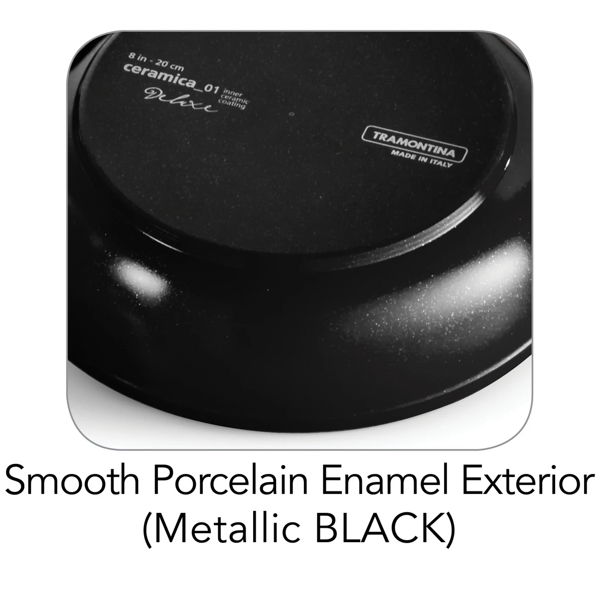 Ultra-durable, easy to clean, chemical-free, eco-friendly, and available in colors as warm as the healthy meals you”ll prepare?what”s not to love about Tramontina”s Gourmet Ceramica Deluxe 8 Pc Cookware Set? Its heavy-gauge aluminum metallic black porcelain enamel exterior is can handle just about any culinary task with a low-effort clean-up. Each piece is crafted with a smooth ceramic interior that is PFOA, lead- and cadmium-free. The riveted, ergonomically designed soft-grip cast stainless steel handles give extra support for comfortable handling and control. This cookware is dishwasher-safe and oven-safe, up to 350°F / 176°C, and compatible with gas, electric, and ceramic glass cooktops. Set includes: 8 in Fry Pan; 10 in Fry Pan; 1.5 Qt Covered Sauce Pan; 3 Qt Covered Sauce Pan, and 5 Qt Covered Dutch Oven. Made in Italy and offered under a Lifetime Warranty.