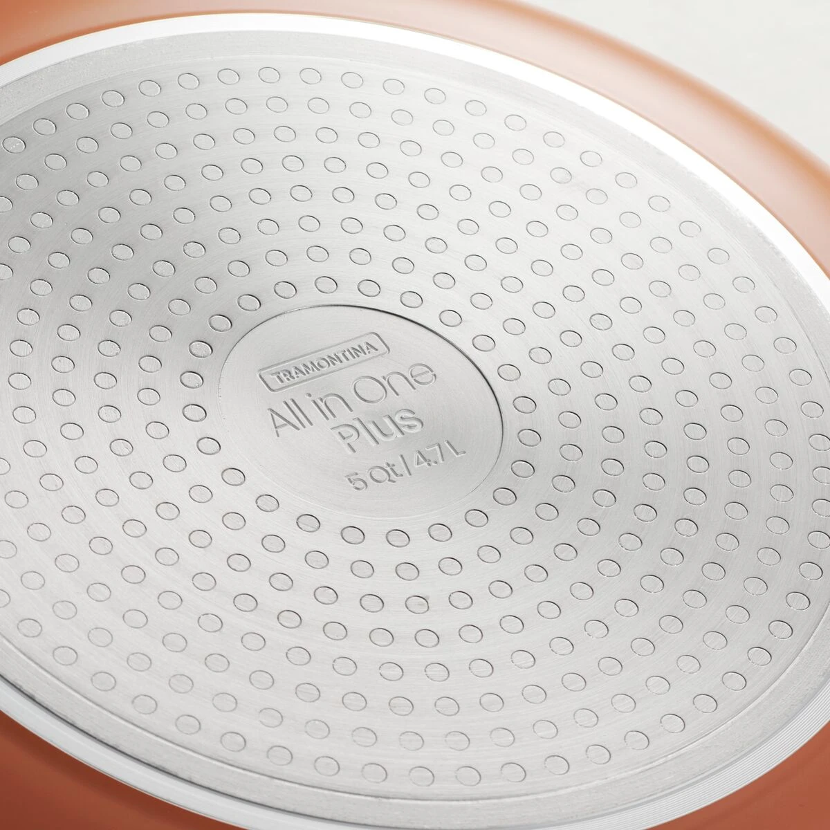 The 5 Qt Forged Aluminum Jumbo Cooker All in One Plus Pan is a versatile 5 piece set designed to do multiple things in the kitchen. It”s a great size for sautéing, frying, braising and more. The cold forged construction pan has a high temperature silicone exterior finish and ILAG® Swiss Crystals non-toxic ceramic non-stick interior that easily wipes clean and doesn”t leach toxic chemicals into your food. The induction-ready stainless steel base plate with magnetic core allows you to use the all in one plus pan on any cooktop. Each set includes a unique aluminum lid with a stainless steel handle that doubles as a spoon rest, a multi-purpose bamboo utensil for flipping and stirring, a convenient nesting steamer insert, and a bamboo trivet that”s perfect for taking the pan directly from kitchen to table. It”s oven-safe up to 400° F/204° C and dishwasher-safe. The Tramontina 5 Qt Forged Aluminum Jumbo Cooker All In One Plus Pan is made in China and comes in seven stylish colors.