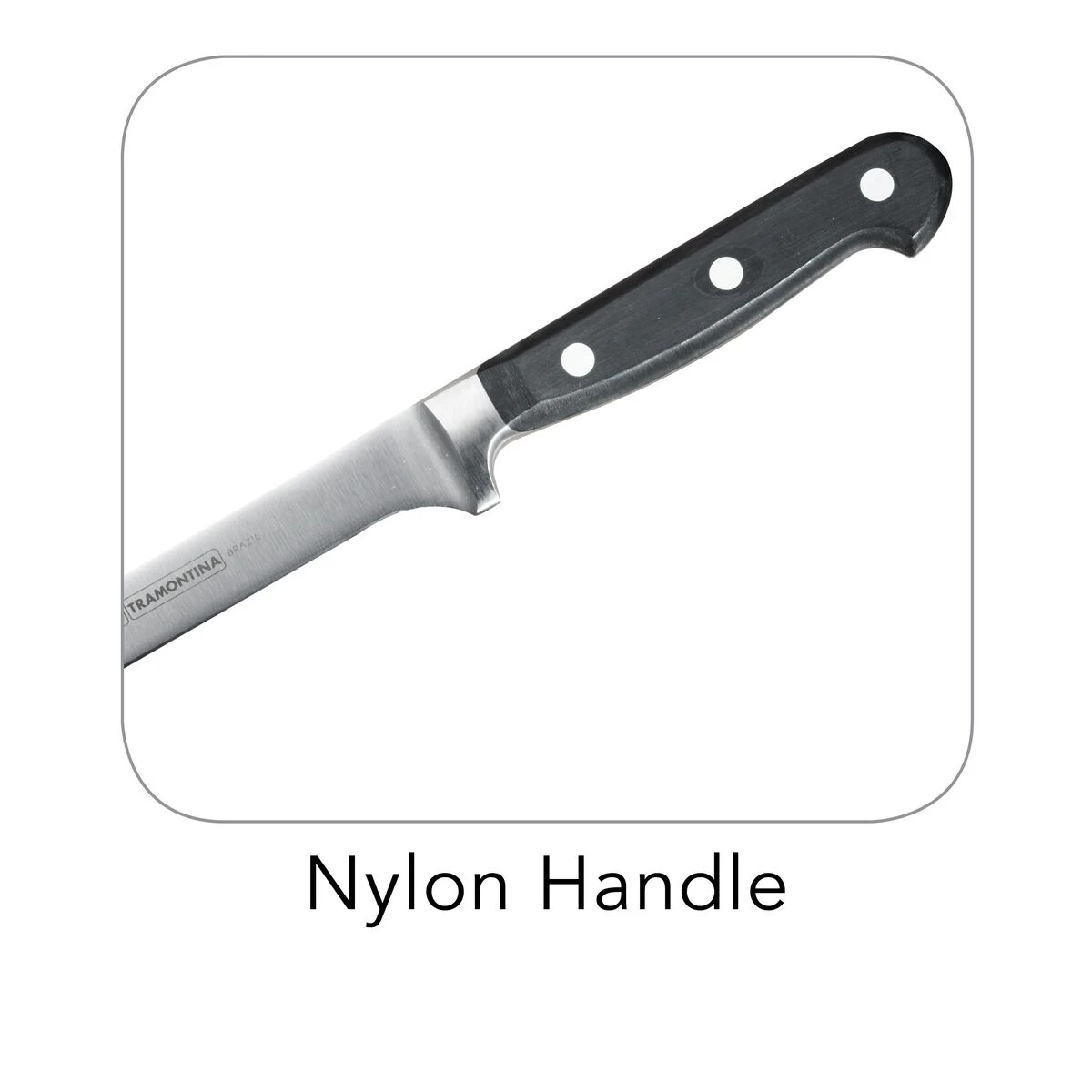 Tramontina”s 10 in Ham Slicer does exactly what its named for doing. It slices ham with ease, thanks to its long, slender blade and rounded tip that can slice across large cuts of meat in one movement. Cooks can also use it for slicing potatoes, squash, and carrots. Tramontina”s knives are forged from a single solid piece of premium high-carbon stainless steel for strength and durability.