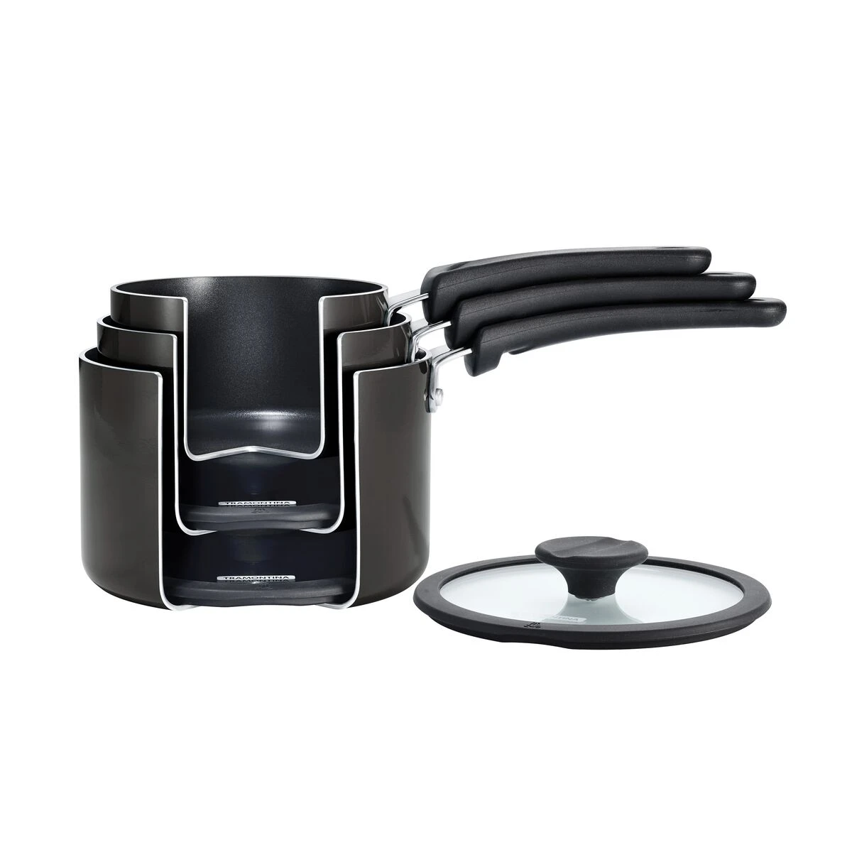 We”ve thought of just about everything to make your cooking, cleaning, and organizing experience better in the kitchen. The Tramontina Nesting 6 Pc Sauce Pan Set will revolutionize your cooking and your storage space. The pieces in this dependable set lock together, and nest within each other – leaving you with 50% more cupboard space!